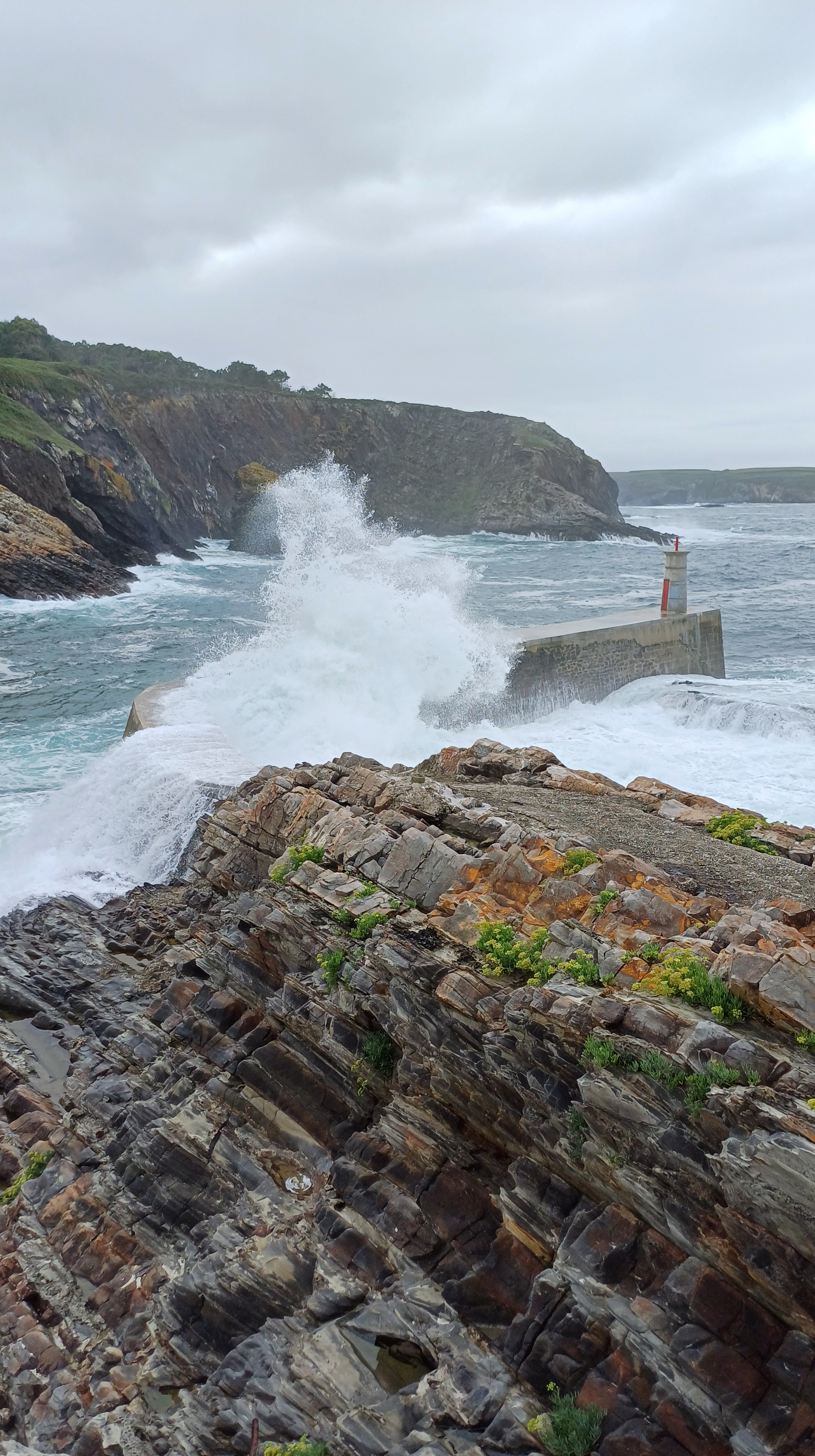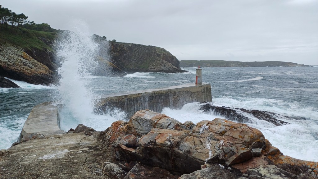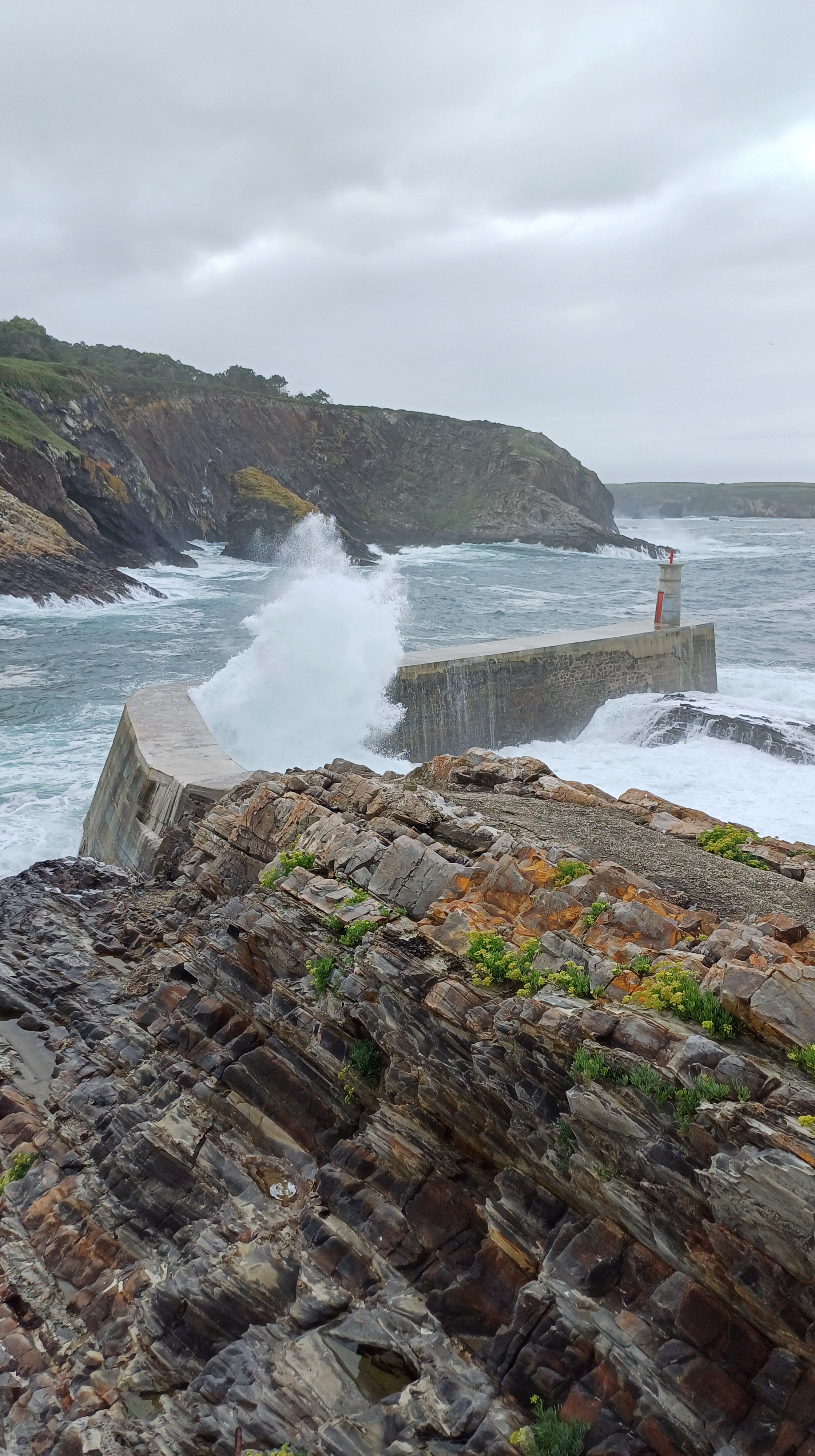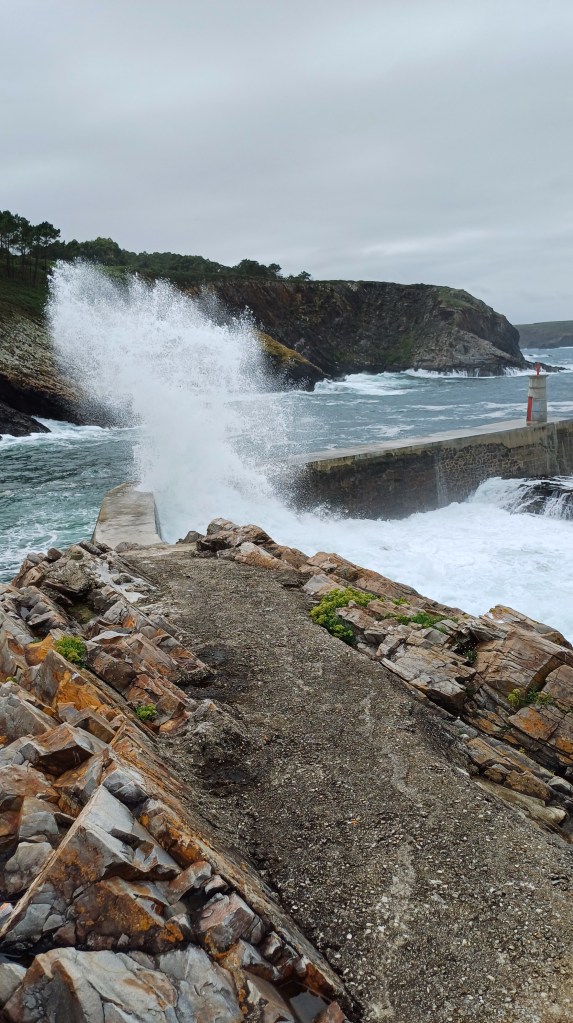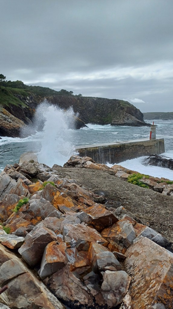 Permitidme que me remita a la entrada de 2016 donde nos íbamos a Viavélez en busca de olas y solo pudimos volvernos con unas magníficas fotos de este maravilloso puerto asturiano. Bueno, pues ocho años después, sí hemos conseguido encontrar las olas. Como en su momento, mañana de paseo por la playa, mar muy movida y marea alta, ingredientes para que el espectáculo esté asegurado (y esta vez sí que fue así!).