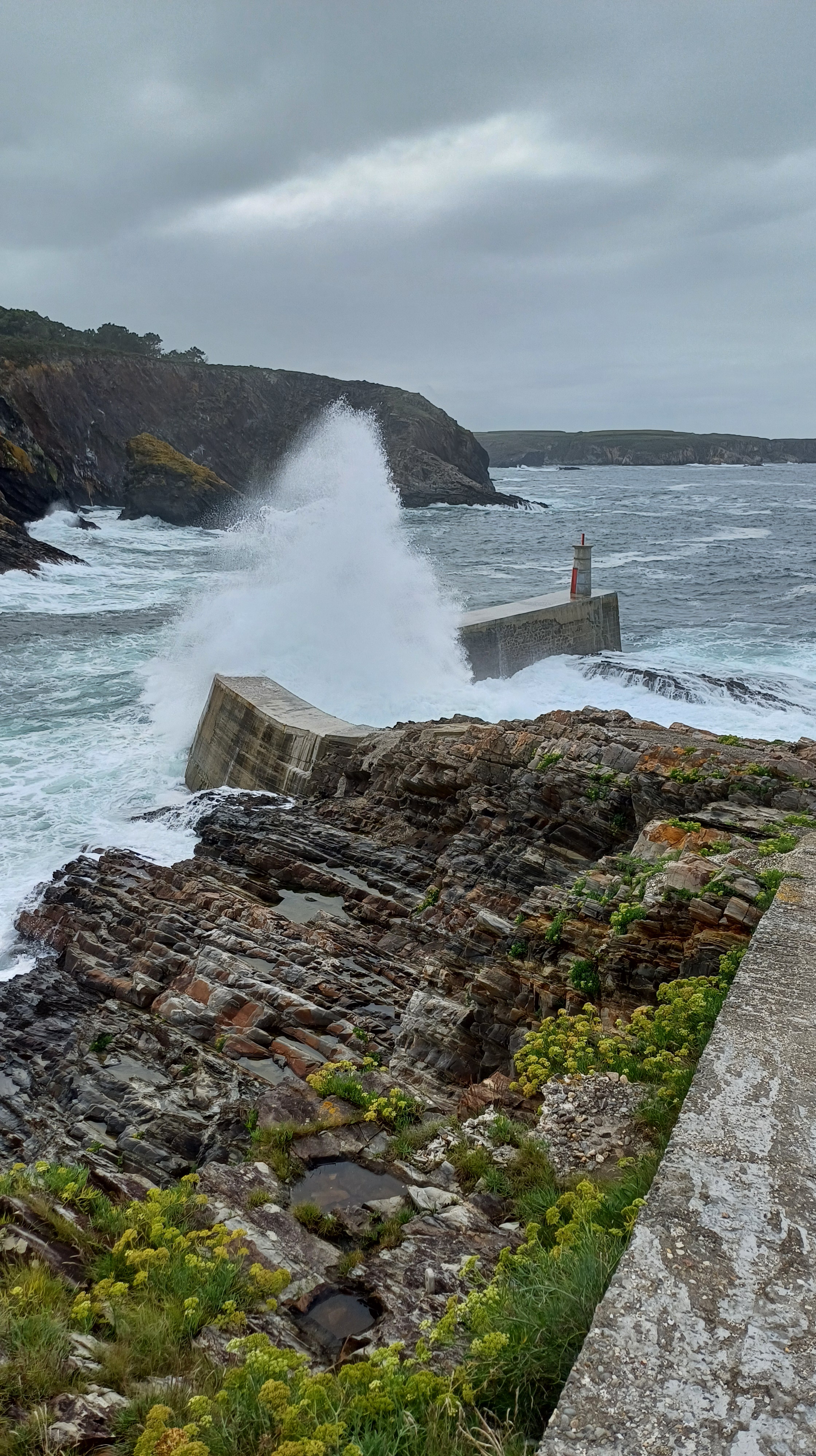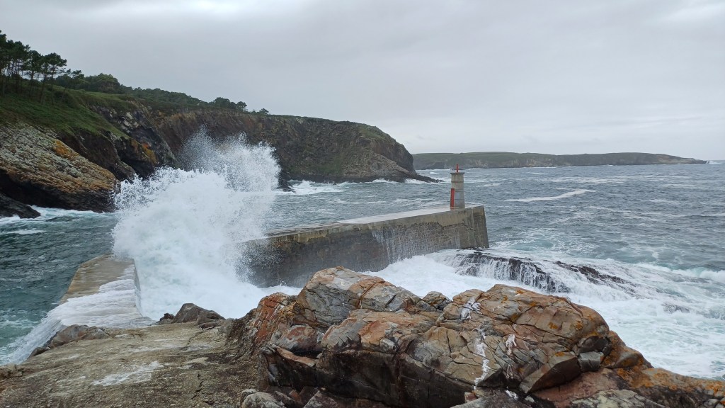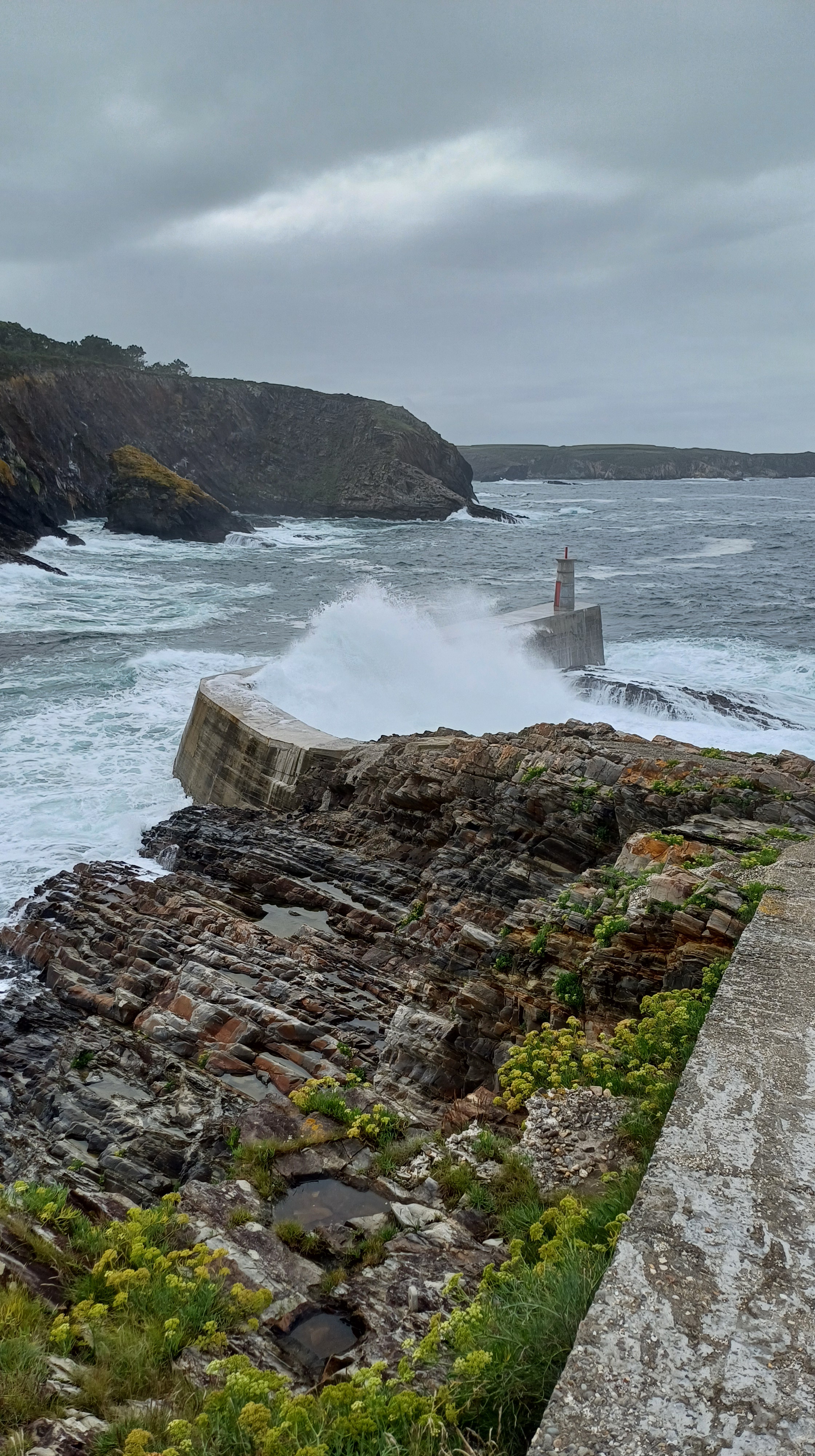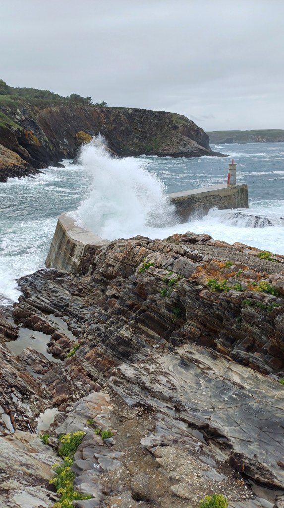 Permitidme que me remita a la entrada de 2016 donde nos íbamos a Viavélez en busca de olas y solo pudimos volvernos con unas magníficas fotos de este maravilloso puerto asturiano. Bueno, pues ocho años después, sí hemos conseguido encontrar las olas. Como en su momento, mañana de paseo por la playa, mar muy movida y marea alta, ingredientes para que el espectáculo esté asegurado (y esta vez sí que fue así!).