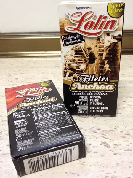 Durante la última visita a San Vicente de este verano, en la que ya me obligué a comprarlas, decidí documentarme un poco y comprar alguna marca que mereciera la pena. Todos los encuestados me sugirieron la marca de conservas Lolín y, en concreto, la Serie Oro de sus filetes de anchoa. Otra recomendación que me hicieron y que me pareció curiosa e interesante es que las anchoas es mejor comprarlas en lata y no en bote de cristal, ya que en esté último acaban salándose más por el efecto del sol. Y así fue, visto la unanimidad en las respuestas y la sugerencia, decidí comprarlas en latas de 50 gramos, ya que soy el único aficionado en casa y éste es buen tamaño para acabarlas de una sentada y que luego no quedaran abiertas.