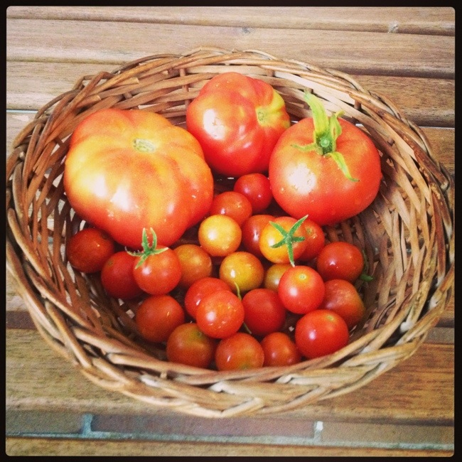 Y qué mejor momento para aprovechar a dar una vuelta por la mini-huerta y recoger algunos tomates, higos y ver cómo van progresando las calabazas, que a este paso, nos echan de casa 🙂