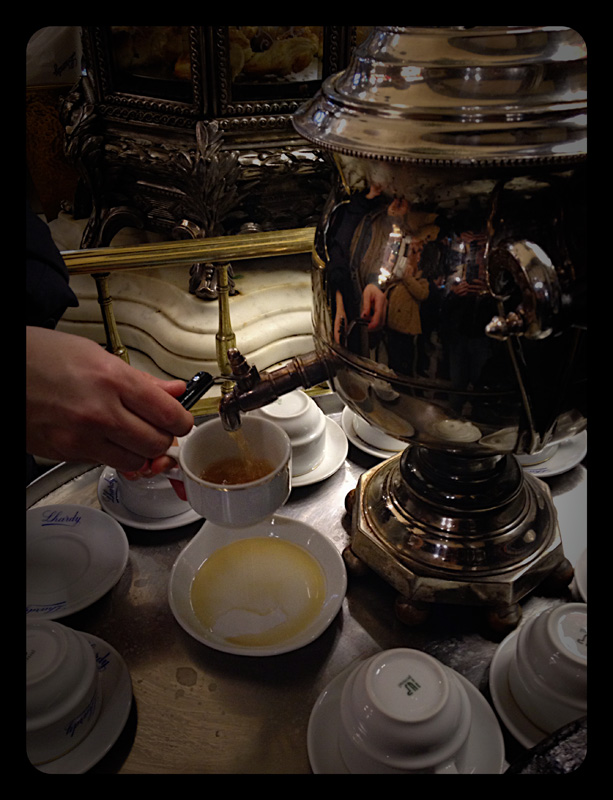 A las dos habíamos quedado con Rosi para conocer otro de los sitios históricos de Madrid, Lhardy, famoso, entre otras cosas por su cocido. Sin embargo la idea no era tomar este plato tan madrileño, sino unos consomés y unas croquetas, también típicos del lugar. Aunque las croquetas no han resultado tan buenas como las de Rosi, merece la pena y lo que sí es muy recomendable si andas por la zona y hace frío, es tomarse un caldito calentito de consomé.