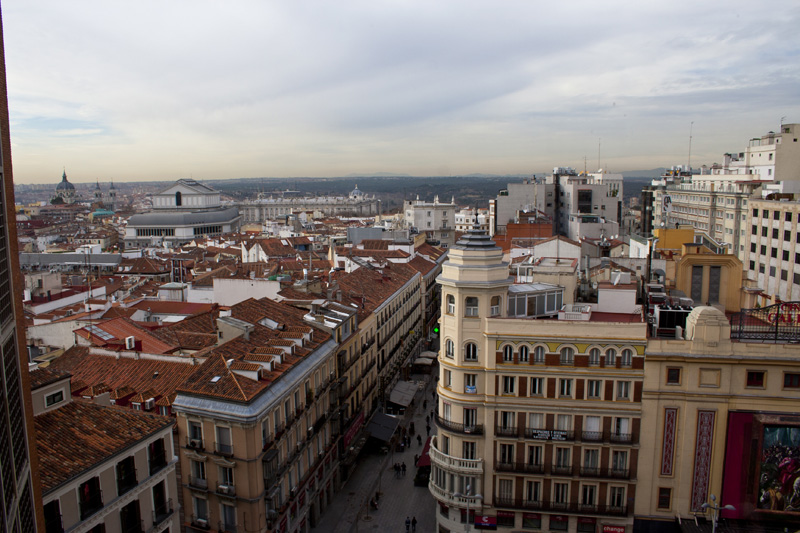 Y por último, no nos íbamos a volver a casa sin tomar algo dulce. En este caso Rosi nos ha llevado a la terraza del Corte Inglés donde han montado otro espacio “gourmet” estilo del mercado, pero en este caso con unas vistas impresionantes de Madrid. Tras unas crepes rellenas de helado y de disfrutar de las vistas, camino de nuevo a la calle Álcalá para coger el autobús y volver a casa.