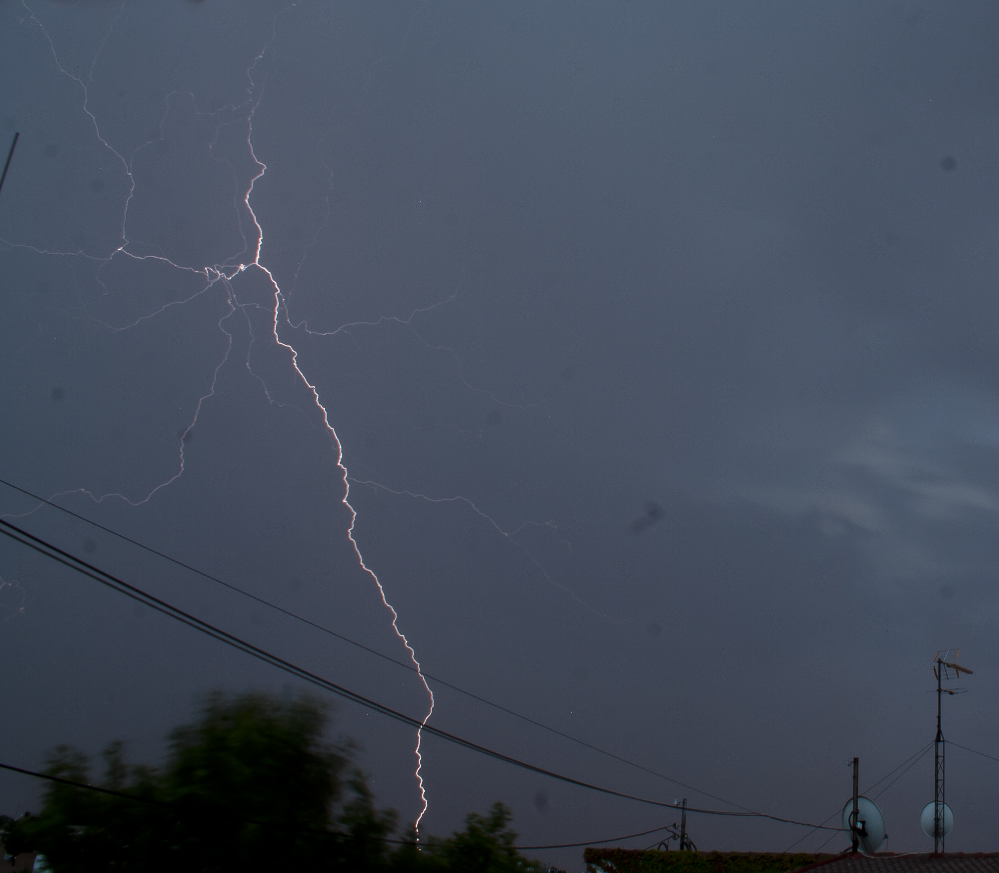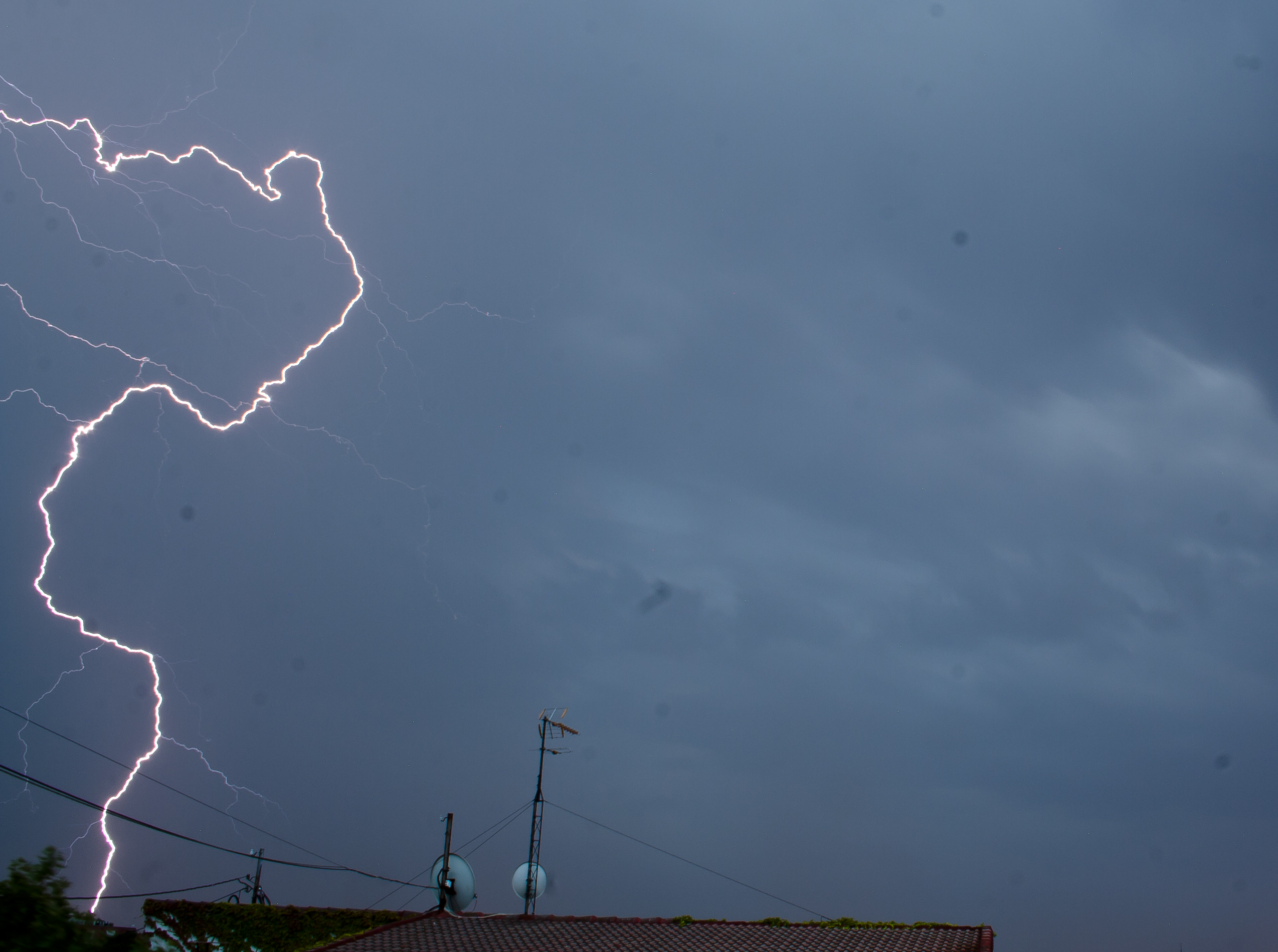 He tenido un momento que desde el ventanal era un auténtico espectáculo, con lo que he cogido la cámara y me he liado a hacer fotos. Al final he conseguido algunas capturas que os muestro a continuación. No está mal tres fotos de rayos en una tormenta.