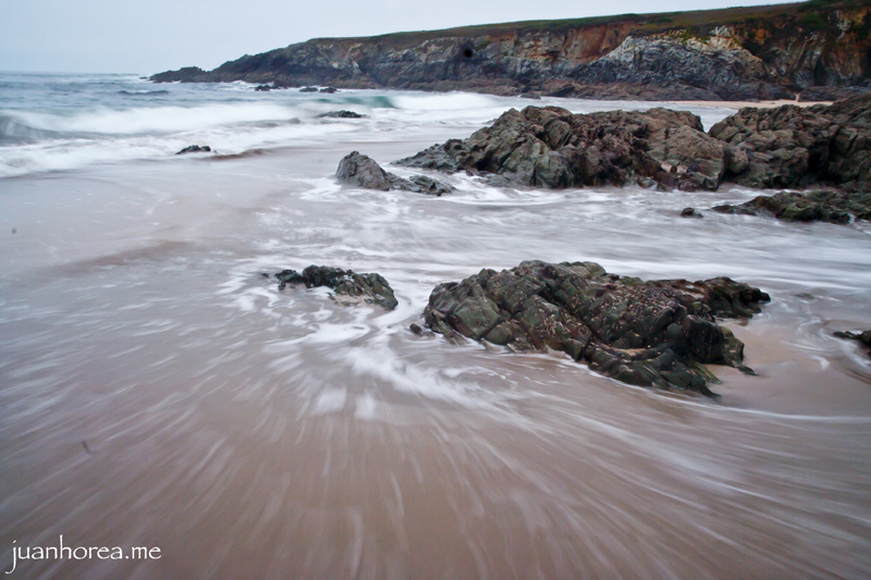Si queréis acercaros a la playa que da título a esta entrada del blog, situada en el Concejo de Tapia de Casariego, os recomiendo que antes comprobéis cuando es la marea baja, ya que en este momento es cuando hay más playa disponible para poder andar. Incluso si apuráis un poco, podréis sentir la adrenalina de quedaros incomunicados en alguna de las calas que forman esta playa, o simplemente de tener que mojaros… 🙂