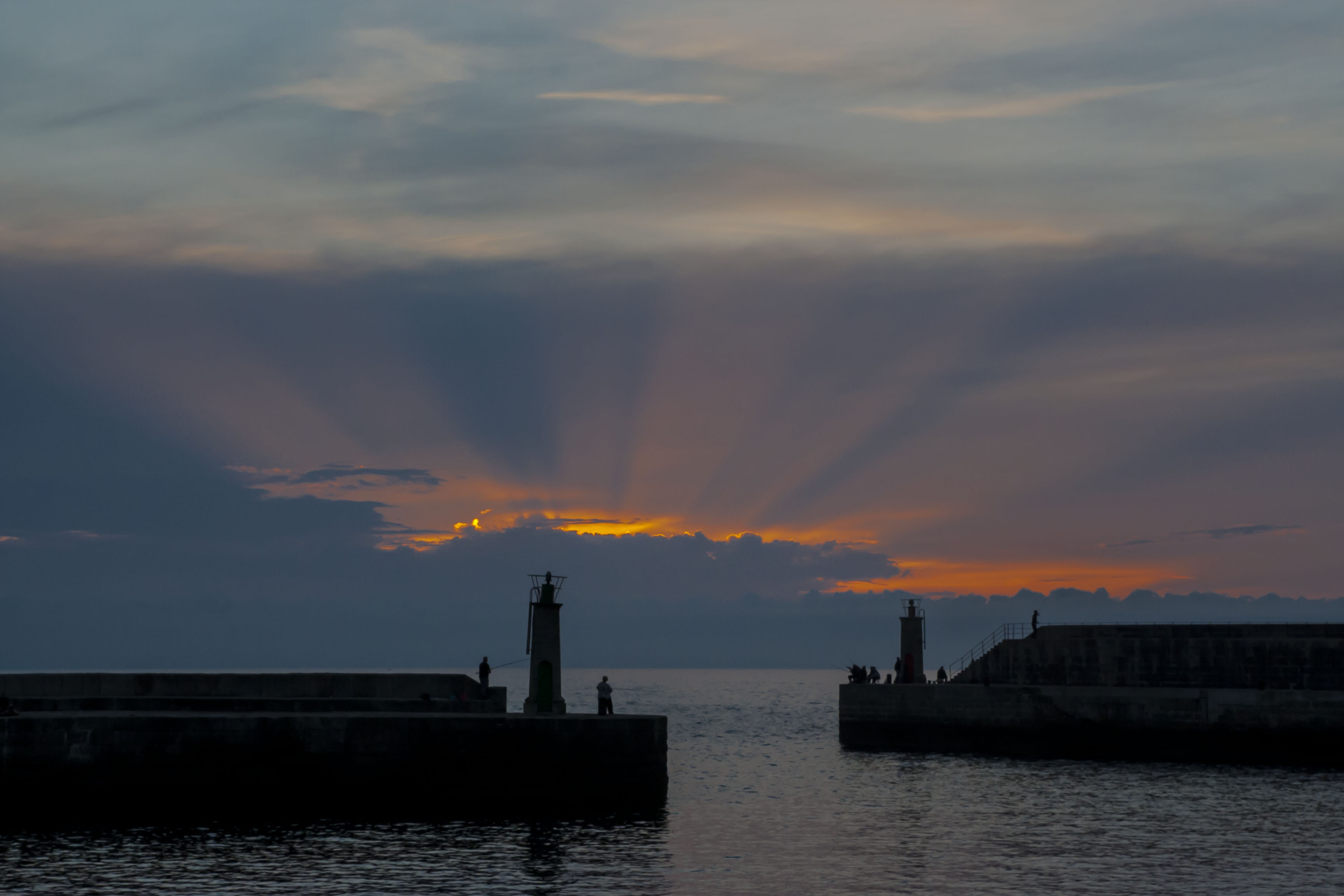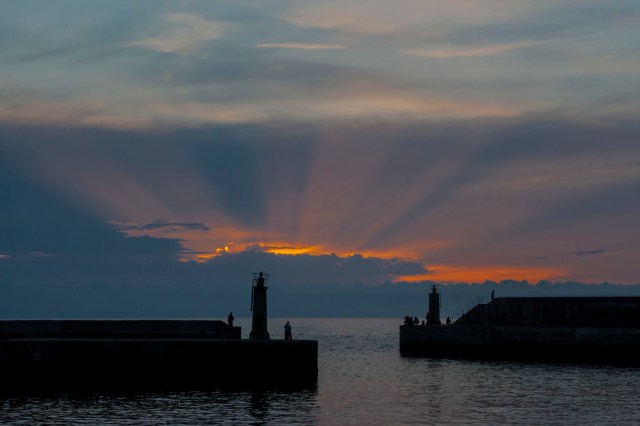 Aunque había muchas nubes que presagiaban que la puesta de sol no iba a ser nada relevante, en el momento de la foto, entre todas esas nubes, aparecieron unos rayos que dieron al ambiente un aspecto celestial, como tantas veces lo hemos visto representado en fotos e ilustraciones.