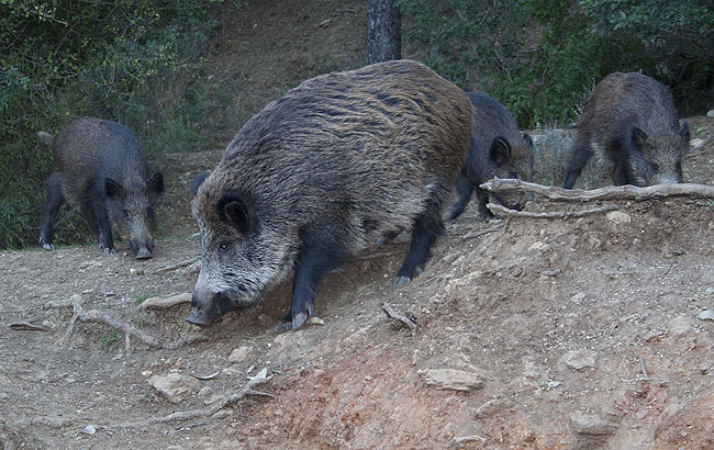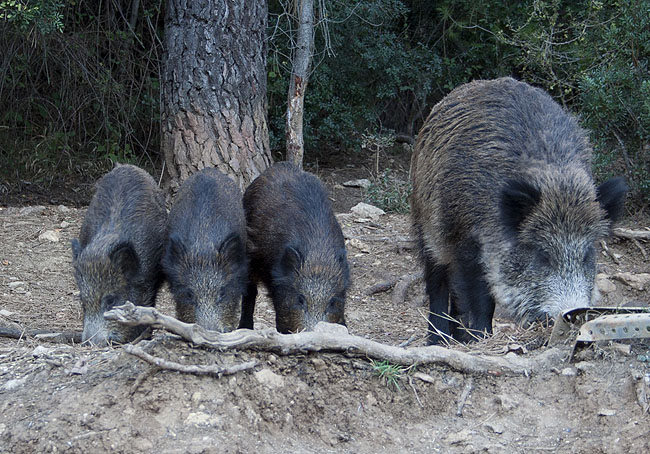 Ya de camino y pegados a la carretera nos encontramos a unos jabalies comiendo. Decidimos parar y disfrutar un rato viéndolos y haciendo algunas fotos. Era la primera vez que me encontraba tan cerca de estos animales vivos. Las niñas, aunque con un poco de miedo al principio, disfrutaron también un montón viendo a la mama y a las crías comiendo a escasos dos metros de nosotros.