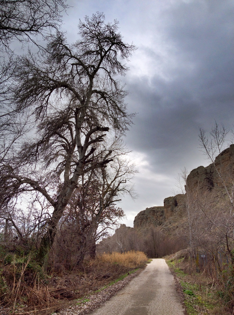 Aunque nos quedaba un poco para acabarlo, se nos estaba echando encima la hora de comer, con lo que decidimos coger una alternativa que también venía con sus sorpresas. Al ir ascendiendo por la ribera del río, salimos a un camino que recorre el pueblo desde lo alto, con lo que las vistas de las casas, de la Catedral de Santa María y del Castillo de la Yedra son sorprendentes.